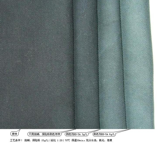 還原染料、硫化染料的剝色可以用相同的方法,但硫化染料的剝色需要更多的堿和保險粉。