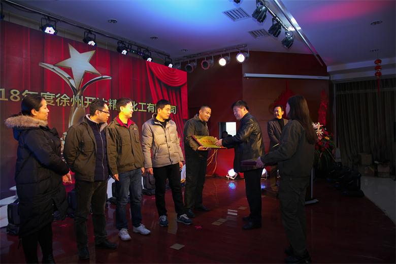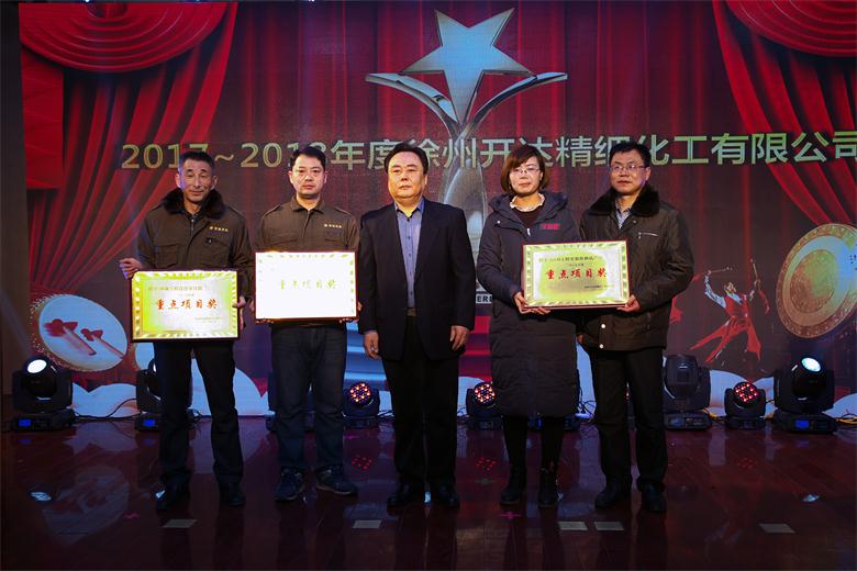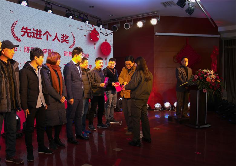 董事長李總、董事會孟總、總經(jīng)理李總頒發(fā)獎勵并合影留念